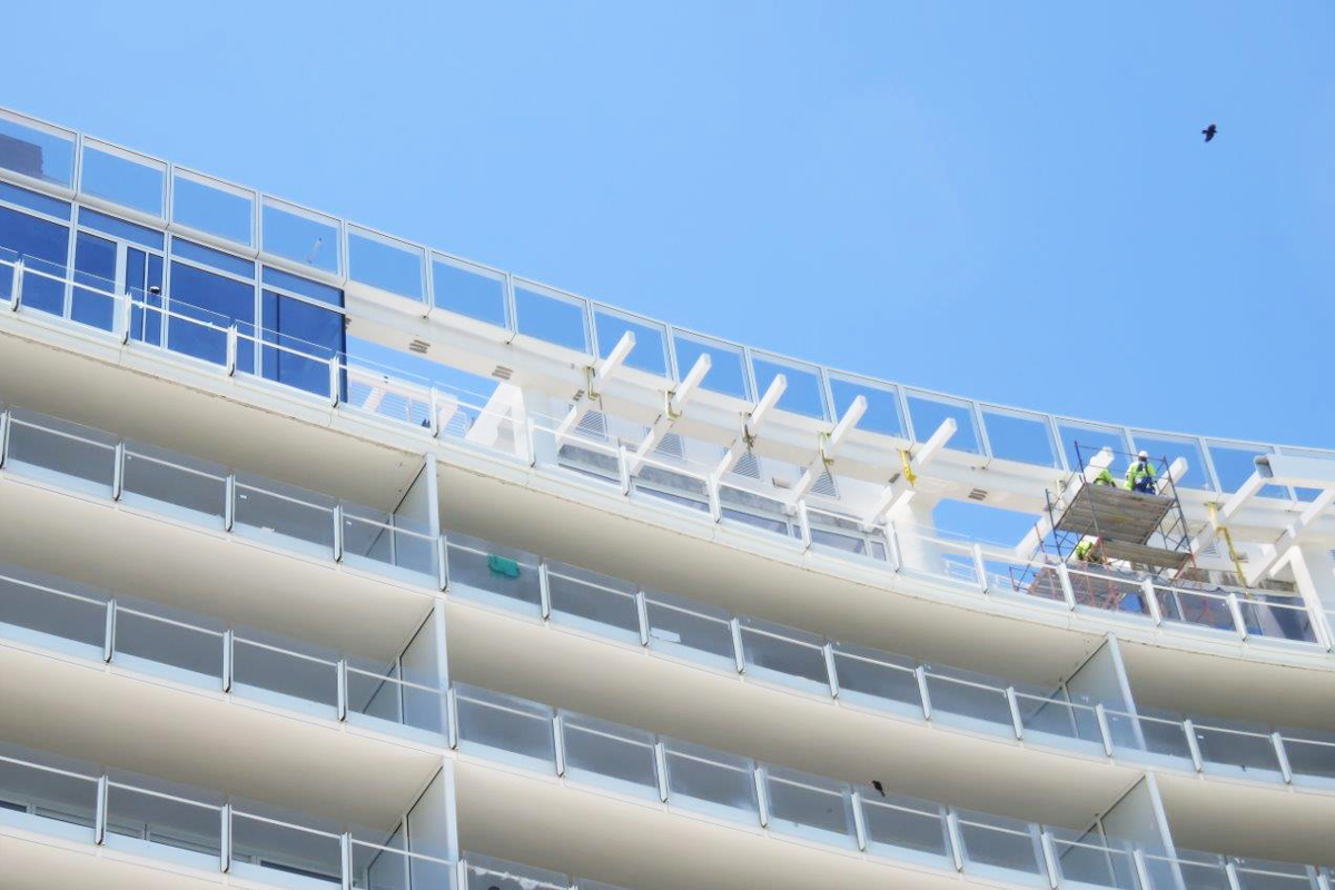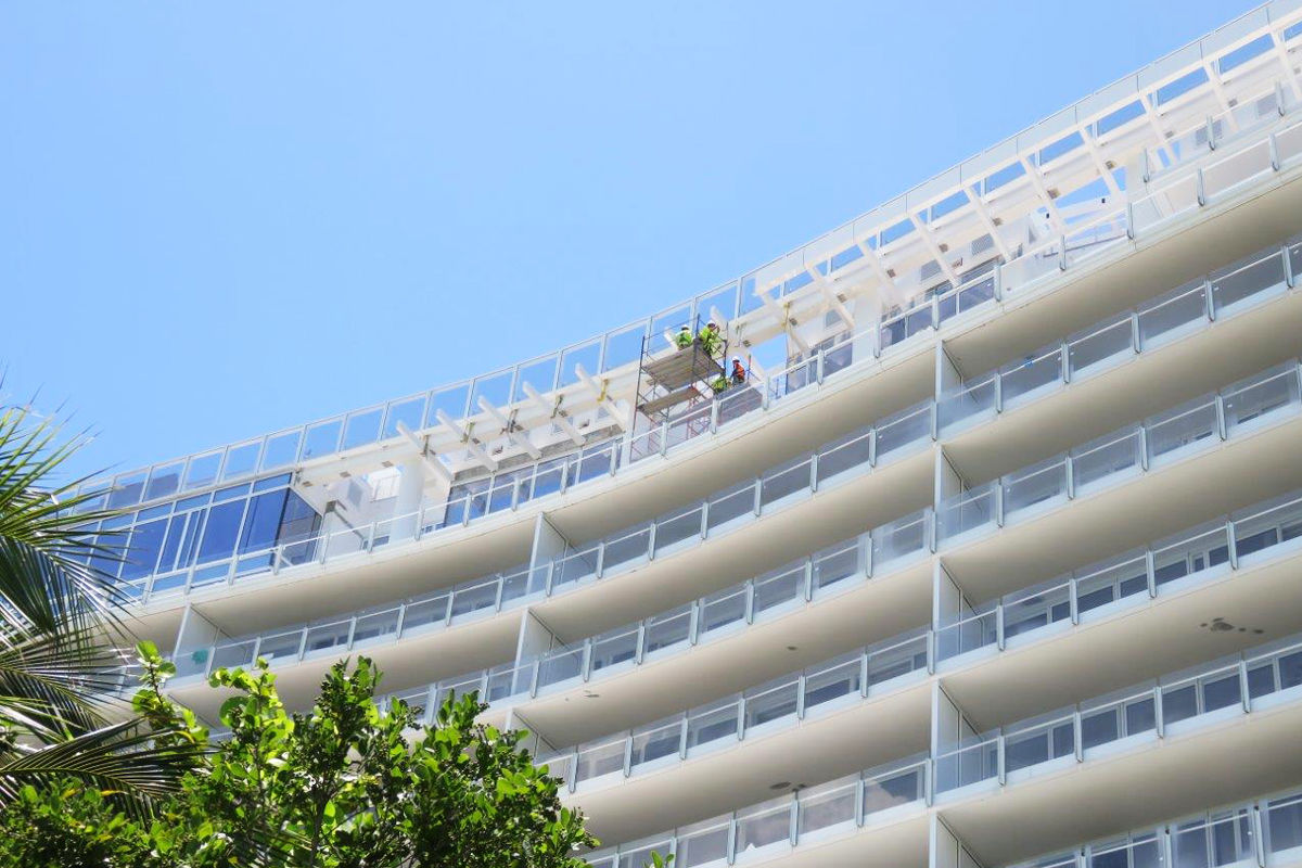 This Brise Soleil is a custom-made structure finished in 2018 that required more than a thousand architectural louvers to cover the prestigious design-build apartments at the Four Seasons Surf Club in Miami Florida.